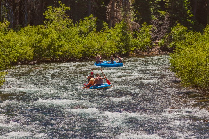 Our Tahoe City rafting excursions feature a leisurely, self-guided, five-mile float down the Truckee River. This journey is perfect for families, couples, or anyone looking for an awesome day of river rafting in Tahoe City. Our trip takes about two to three hours, depending on your pace and number of stops.